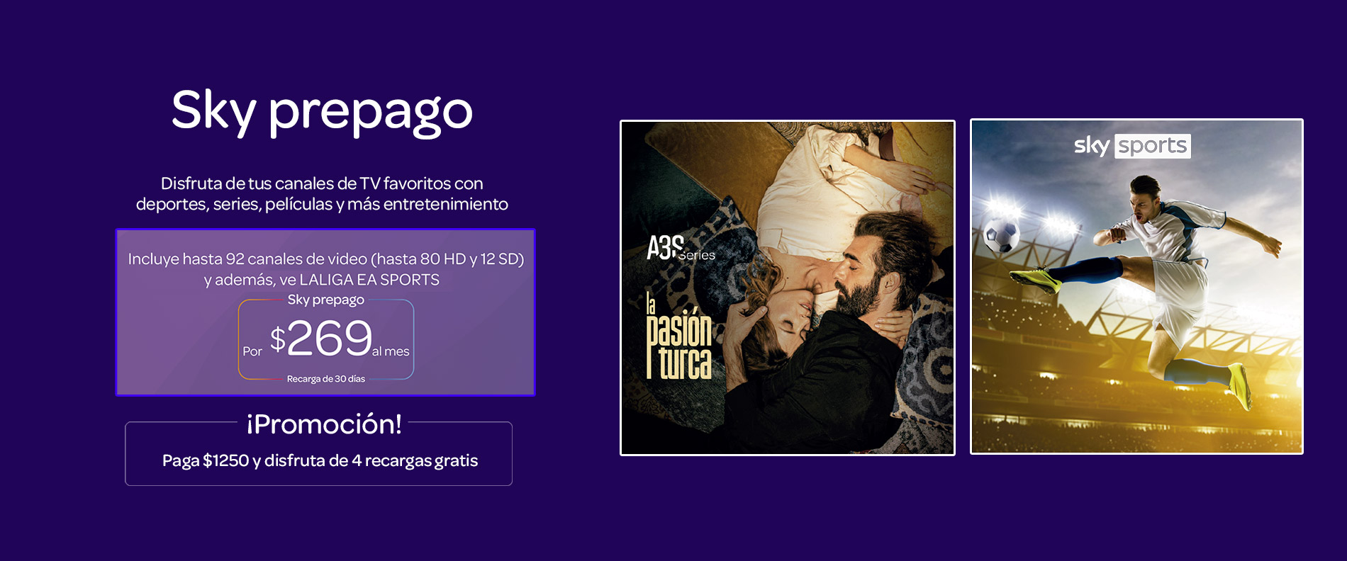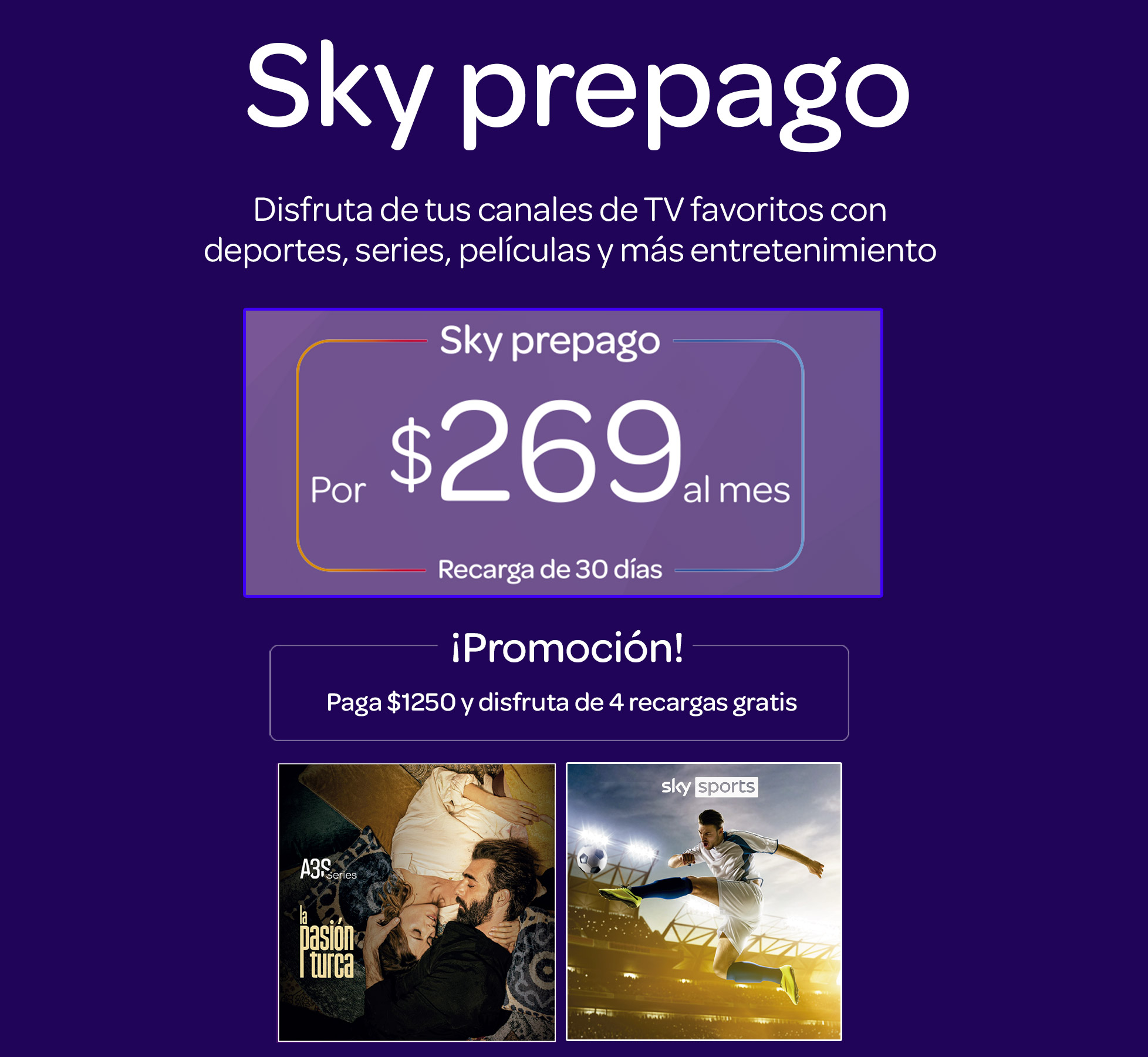 Elige cualquiera de nuestros paquetes Sky prepago